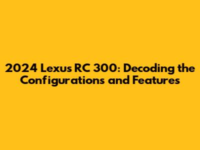 Alright, car enthusiasts, let's dive into the world of the 2024 Lexus RC 300! If you're eyeing this sporty coupe, you're in for a treat. This article breaks down everything you need to know about the different configurations, features, and what makes this car a head-turner. We'll explore the various trim levels, performance specs, interior design, and technology to help you decide if the RC 300 is the right fit for your lifestyle. So, buckle up, and let's get started!