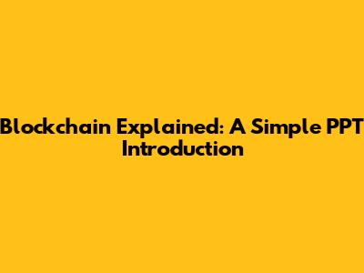 Blockchain Explained: A Simple PPT Introduction