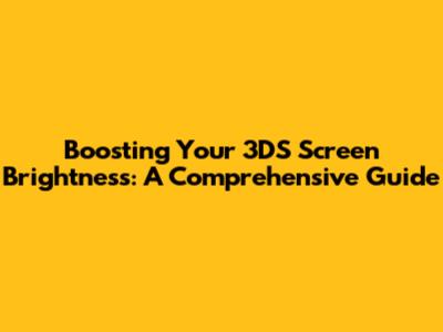 Boosting Your 3DS Screen Brightness: A Comprehensive Guide