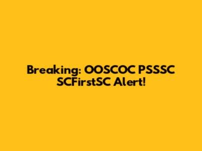 Breaking: OOSCOC PSSSC SCFirstSC Alert!
