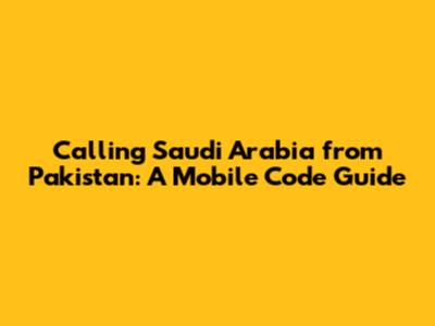Calling Saudi From Pakistan: Mobile Codes & Guide