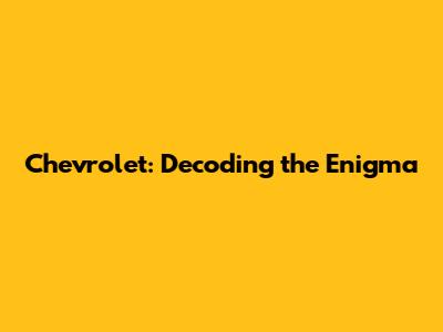 Chevrolet: Decoding The Enigma