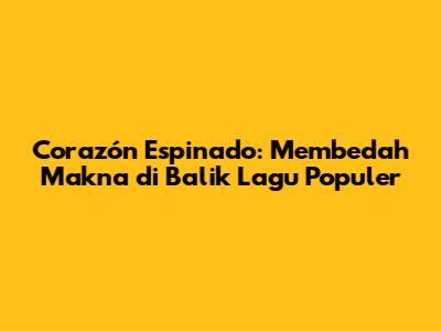 Corazón Espinado adalah sebuah mahakarya musik yang akan terus dikenang dan dinikmati oleh banyak orang. Dengan memahami terjemahan lagu Corazón Espinado, kita dapat lebih menghargai keindahan musik dan makna yang terkandung di dalamnya.