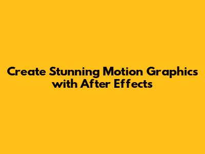 Create Stunning Motion Graphics With After Effects