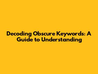 Decoding Obscure Keywords: A Guide To Understanding