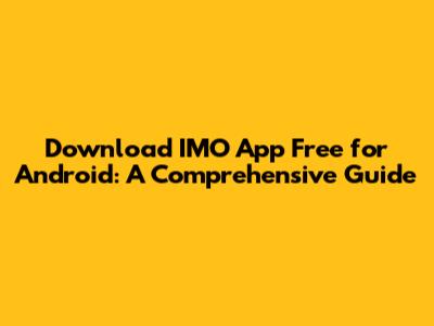 Download IMO App Free For Android: A Comprehensive Guide
