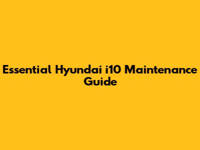 Essential Hyundai I10 Maintenance Guide
