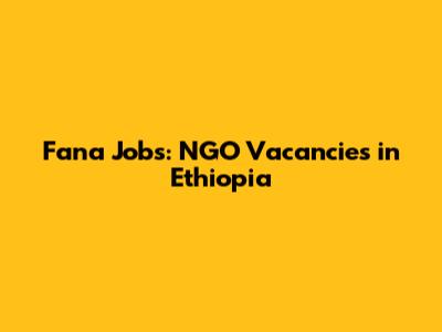 Fana Jobs: NGO Vacancies In Ethiopia
