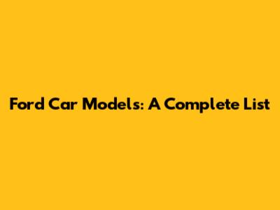 Ford Car Models: A Complete List