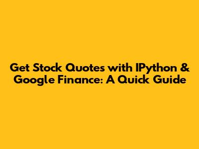Hey guys! Ever wanted to grab some stock quotes directly from your IPython console? It's super handy for quick market analysis or building your own financial dashboards. In this guide, we'll dive into how you can easily fetch stock data using IPython and Google Finance. Let's get started!