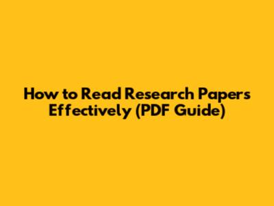 How To Read Research Papers Effectively (PDF Guide)