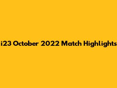 I23 October 2022: Top Match Highlights & Key Moments