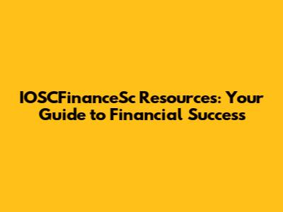 IOSCFinanceSc Resources: Your Guide To Financial Success