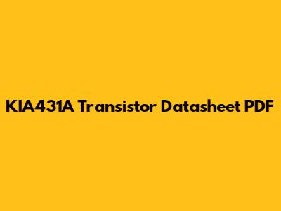 KIA431A Transistor Datasheet: Specs & PDF Download