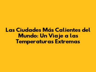 ¡Hola a todos los aventureros y amantes del calor! ¿Alguna vez se han preguntado cuáles son las ciudades más calientes del mundo? Prepárense para un viaje fascinante a través de las temperaturas extremas, donde el sol brilla con una intensidad que pondrá a prueba su resistencia. En este artículo, exploraremos algunas de las ciudades más ardientes del planeta, revelando secretos sobre su clima, su gente y cómo sobreviven en estas condiciones extremas. ¡Así que pónganse sus sombreros y prepárense para sentir el calor!