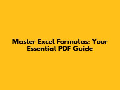 Master Excel Formulas: Your Essential PDF Guide