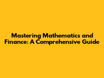 Mastering Mathematics And Finance: A Comprehensive Guide