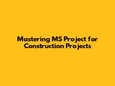 Mastering MS Project For Construction Projects