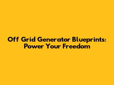 Off Grid Generator Blueprints: Power Your Freedom
