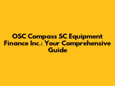Hey there, finance folks! Are you looking to understand OSC Compass SC Equipment Finance Inc.? You've come to the right place! We're diving deep into the world of equipment financing, breaking down everything you need to know about OSC Compass SC and how it can help you get the equipment you need to grow your business. Buckle up, because we're about to embark on a journey filled with useful insights, practical advice, and everything in between.
