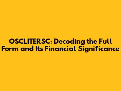 OSCLITERSC: Decoding The Full Form And Its Financial Significance