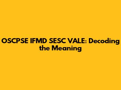 OSCPSE IFMD SESC VALE: Decoding The Meaning