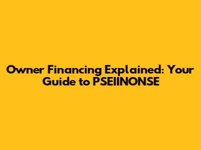 Owner Financing in the Context of PSEIINONSE and Real Estate
