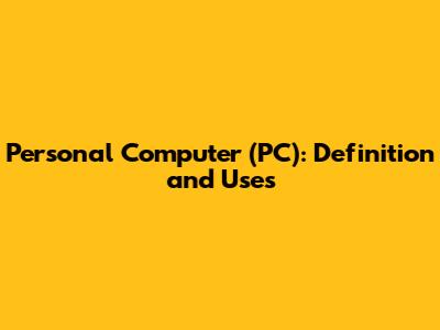 Personal Computer (PC): Definition And Uses