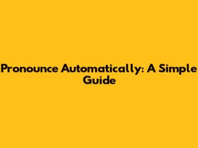Pronounce Automatically: A Simple Guide