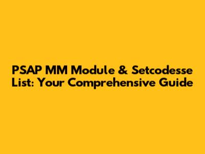 PSAP MM Module & Setcodesse List: Your Comprehensive Guide