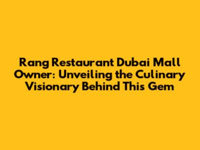 Rang Restaurant Dubai Mall: Unveiling The Owner & Culinary Delights
