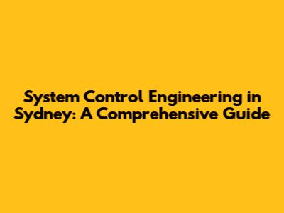 System Control Engineering In Sydney: Your Comprehensive Guide