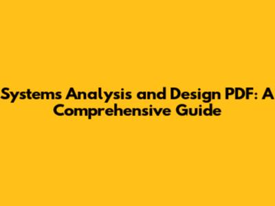 Systems Analysis And Design PDF: A Comprehensive Guide