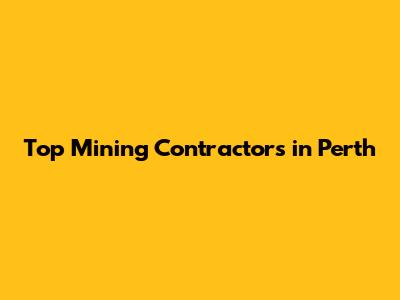 Top Mining Contractors In Perth