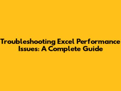 Troubleshooting Excel Performance Issues: A Complete Guide