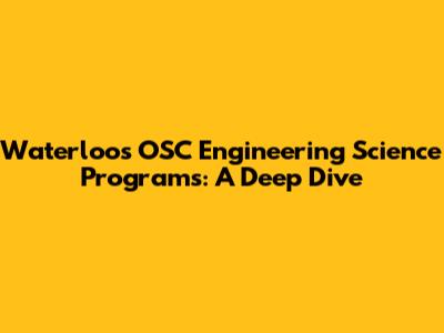 Waterloo's OSC Engineering Science Programs: A Deep Dive